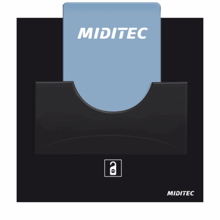 Energiesparterminal zur Freischaltung von elektrischen Verbrauchern in einem Raum. Erst durch Einstecken einer RFID-Karte oder eines RFID-Coins wird der Stromkreislauf freigegeben. Dadurch wird automatisch der Energieverbrauch reduziert, wenn sich niemand im Raum befindet.